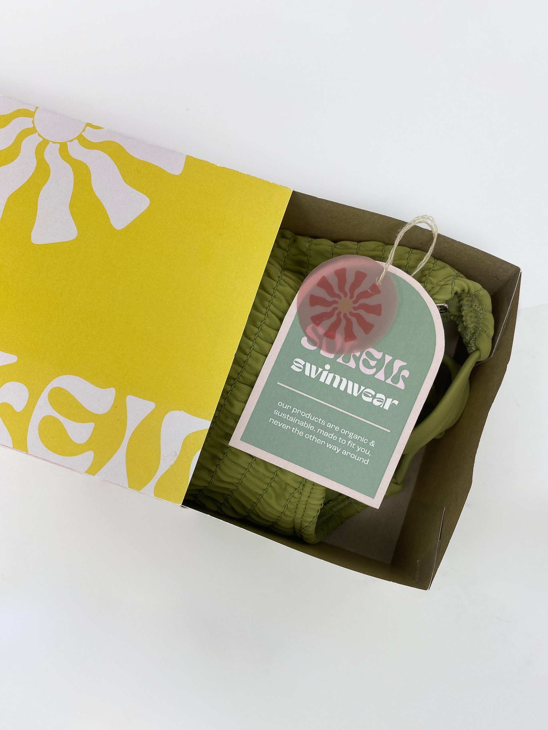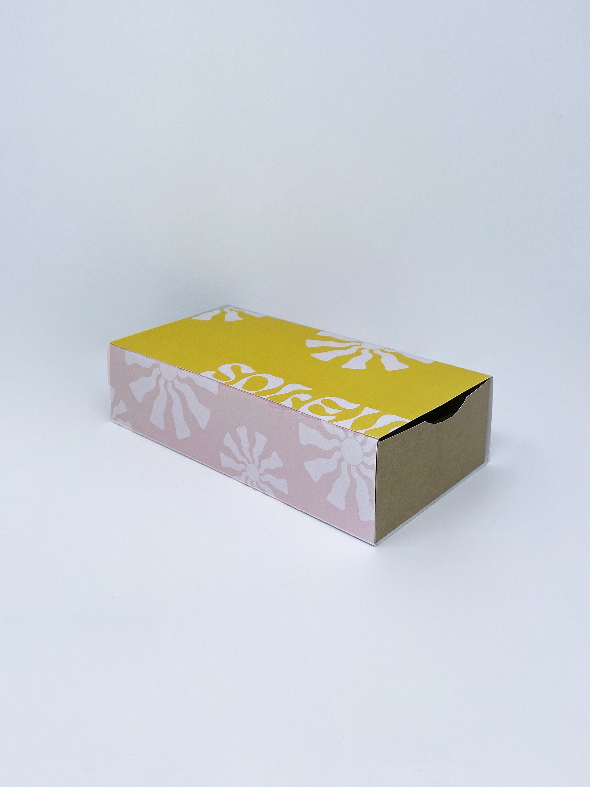 Soleil Swimwear is a fictitious body positive, sustainable swimwear brand that I created a logo and packaging for. I chose a pastel color palette and fun, organic suns to convey the lighthearted and genuine spirit behind the brand.